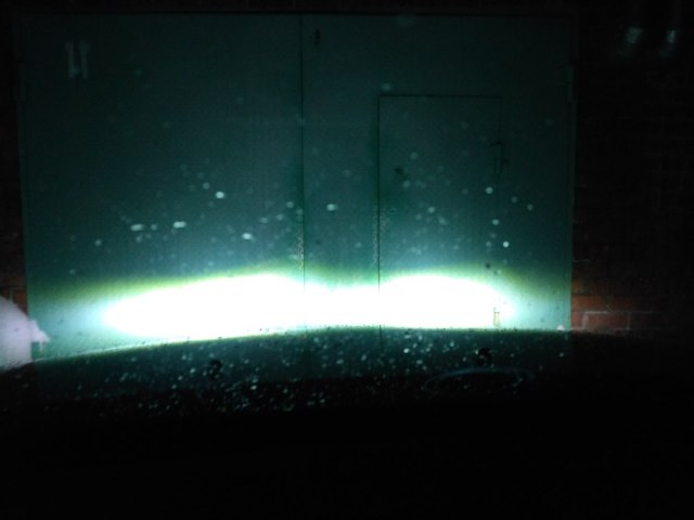 Фото вышло не очень удачное, так как делал это вечером, зимой, и снимал на телефон. Но всё ж светотеневая граница видна, и яркость тоже в сравнении с галогенкой. Галогенка-слева, Led- справа.