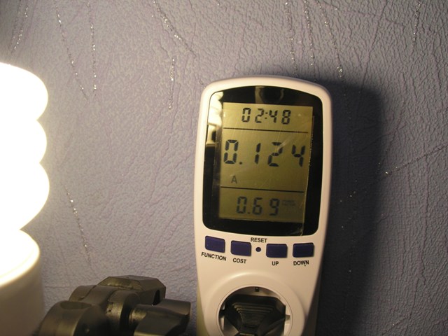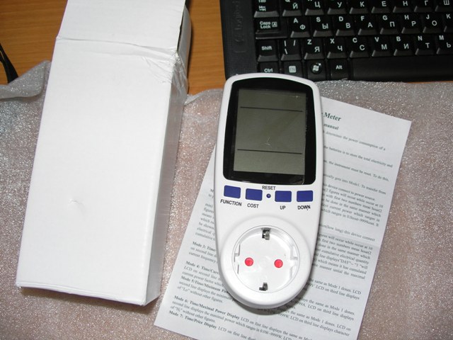 Данный прибор позволяет измерить потребляемую мощность включенного в него электроприбора. И даже указав цену за кВт посчитает затраты.