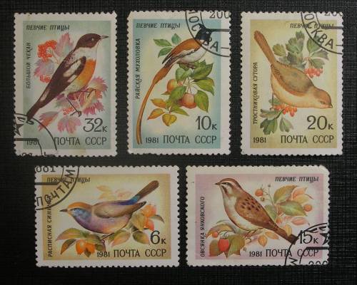 Марки Певчие птицы 1981 (СССР)