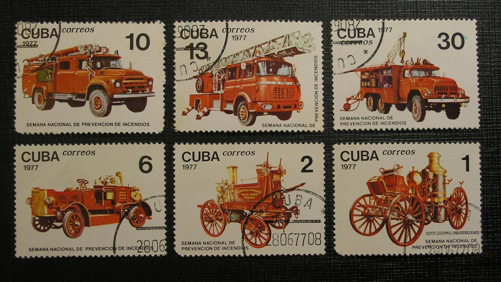 Набор марок Пожарные автомобили 1977 (Куба)